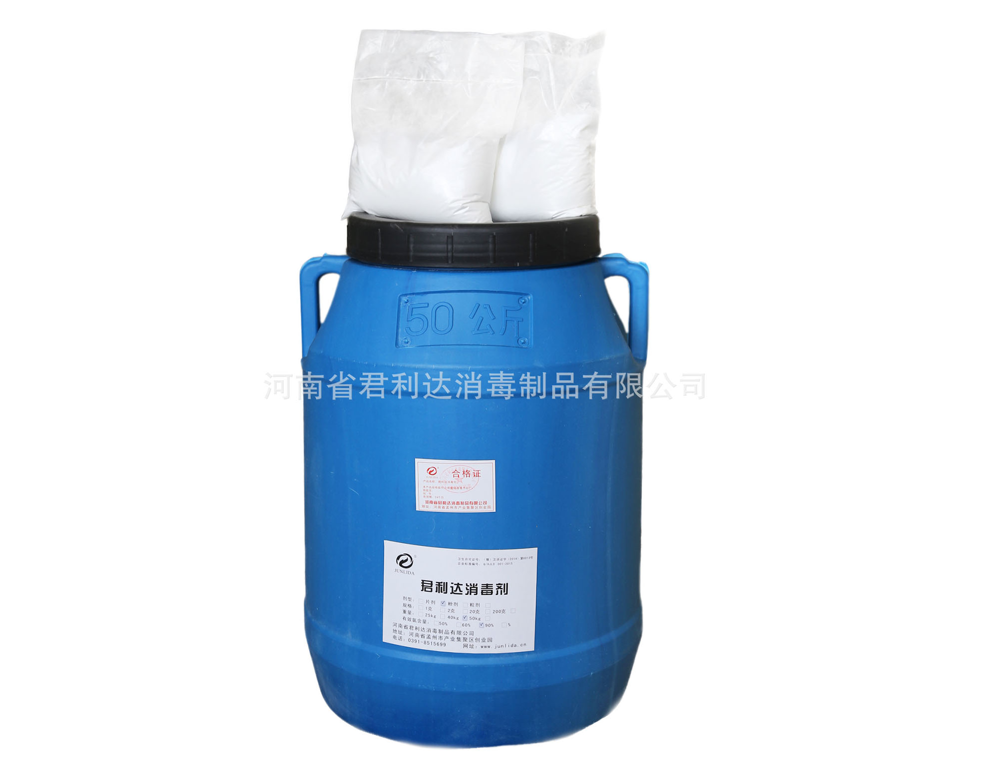 外觀:白色粉劑;規格:1kg*50袋/桶;有效氯含量:≥90%; PH值(1%水溶液):2.0~3.0; 氣味:有刺激性氯味;保質期:2年;